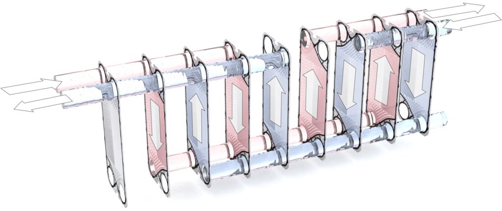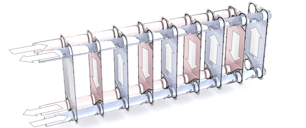 Plate heat exchangers can feature single or multiple-pass configurations depending on the requirements, with the single-pass configuration most commonly used.
